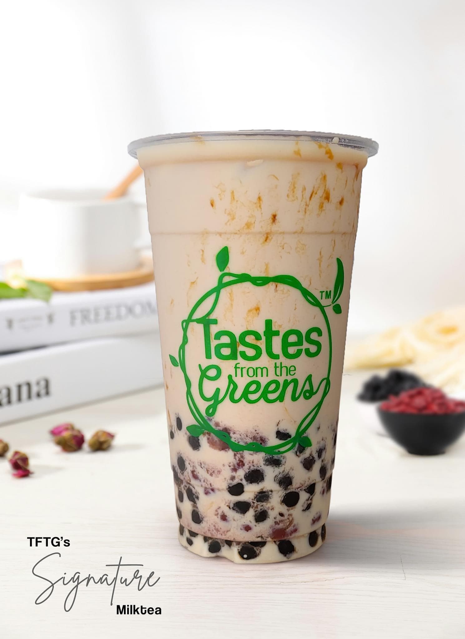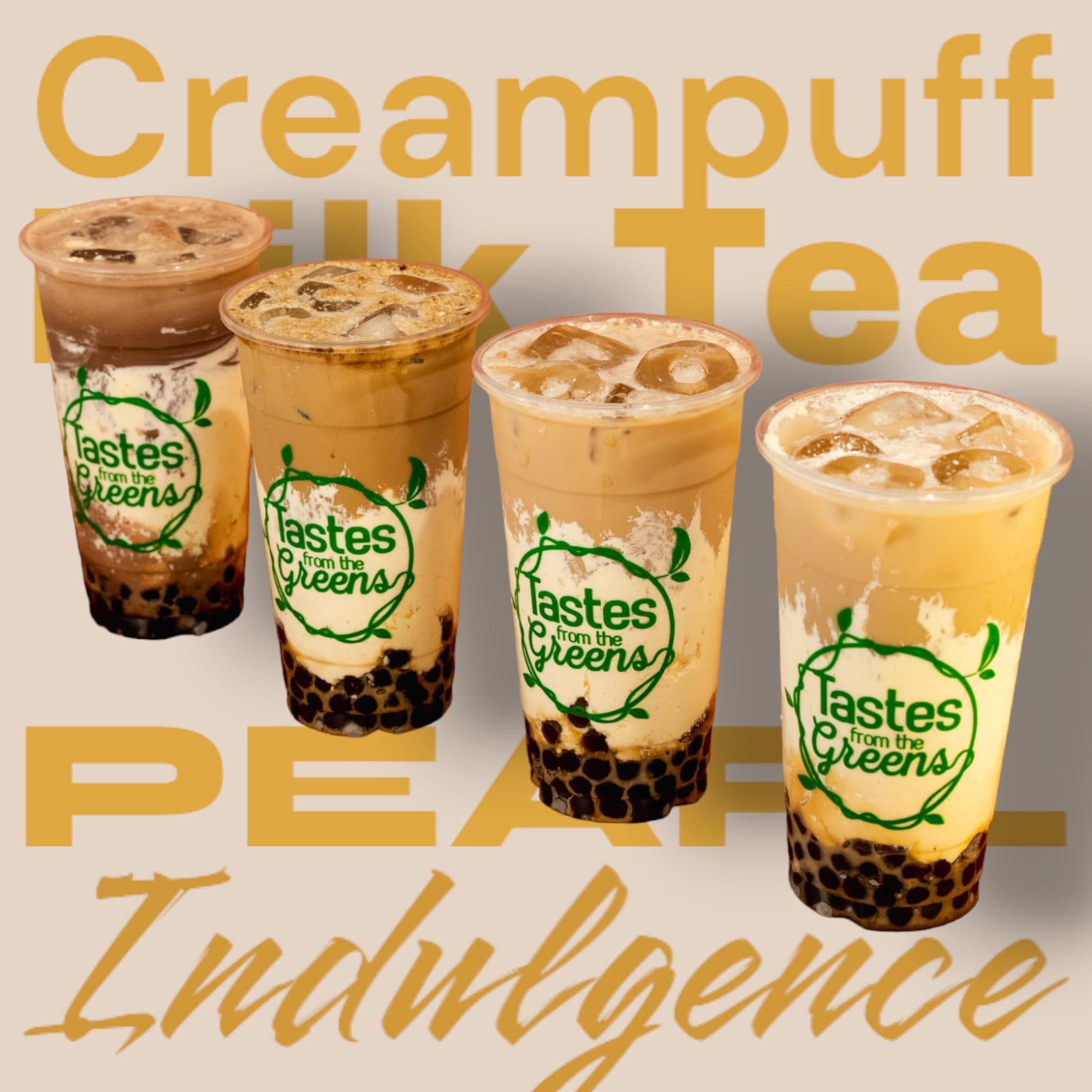 Experience delightful layers with Creampuff Milk Tea and pearls from Tastes from the Greens.